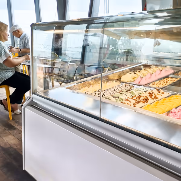 The PURA ice cream display counter combines innovative design and advanced technology to provide exceptional product visibility. With a wide display area and cutting-edge refrigeration solutions, PURA ensures perfect conservation of your ice cream, maintaining its texture and flavour at optimal conditions.